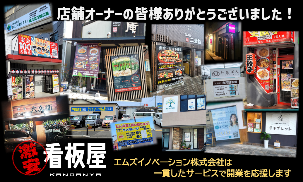 店舗サイン(看板)は新店オープン時に欠かせないものです。弊社では「激安看板屋」を運営しており、特に小規模店舗様などに少しでもご負担が軽減されるようなご提案を行なっております。​新オーナー様がご不安なくスムーズに店舗運営して頂くため弊社に出来ることは…と常に考えております。